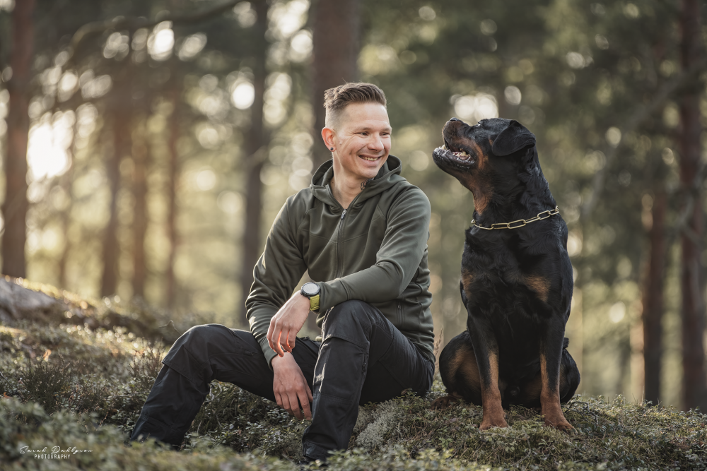 Perheessäni on ollut aina koira siitä asti kun olen ollut kuuden vanha pikkupoika. Ensimmäinen koira tuolloin oli bernhardinkoiranarttu, jonka jälkeen kotona oli eri kokoisia sekarotuisia koiria. Olen siis lapsesta asti ollut hyvin koirarakas ihminen. Voisi jopa sanoa, että pidän ihmisistä, mutta rakastan koiria. Ensimmäinen oma koirani oli kodinvaihtajana tullut rottweiler-narttu, joka opetti minua ja avopuolisoani erittäin paljon. Tällä hetkellä kotoa löytyy yksi rottweiler-uros, jonka kanssa olemme pyrkineet harrastelemaan ihan kaikkea laidasta laitaan koiran ja itsemme mieliksi.